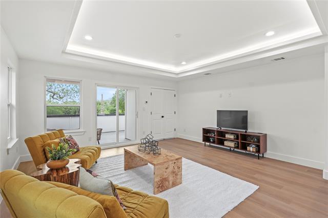 Motivated Seller Lowest Priced New Construction in East Dallas. Discover luxury living in this impeccably designed 3-bedroom, 2.2 bathroom modern duplex, perfectly situated near the scenic Santa Fe Trail in Dallas. This contemporary three-story masterpiece offers a seamless blend of style, comfort, and functionality. Features: Open Concept Living: The main floor boasts an expansive living and dining area flooded with natural light, a cozy fireplace with tile finishes. Sleek finishes and modern fixtures create a sophisticated atmosphere. A chef’s dream, the kitchen features quartz countertops, top-of-the-line stainless steel appliances, a large island with bar seating, and custom cabinetry for ample storage with pull out drawers. The Bedrooms on the second floor hosts two spacious bedrooms with walk-in closets and large windows that frame stunning views, the Master bedroom has box ceiling with led lights floating vanity and walk in showers. The third floor is dedicated to the luxurious Game room, complete with a half bath and a private balcony. Located just steps from the Santa Fe Trail, this home offers unparalleled access to walking, biking, and outdoor activities while being minutes from vibrant shopping, dining, and entertainment options in Downtown Dallas and Deep Ellum.