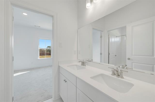 Located in Arlington ISD part of the Sterling Greene community, the neighborhood offers excellent opportunities in education and an added sense of comfort with a gated entrance. This stunning 2-story home provides a comfortable open floorplan with an Extra Suite, ideal for extended stay guests. A private home office followed by an intimate dining room is great for entertaining. The kitchen features a spacious island and overlooks the well-lit great room. A cozy dining area allows access to the covered patio, great for outdoor living. In from the garage, a HovHall and laundry room keep your home tidy. The primary suite with private bath and spacious walk-in closet. A versatile loft, a media room, and 3 additional bedrooms with hall bath allow for comfort for all.