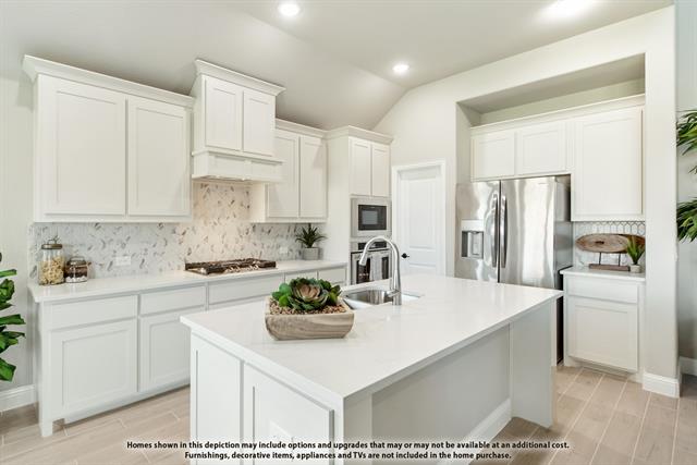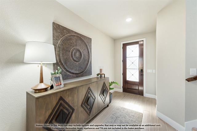NEW! NEVER LIVED IN. Construction estimated finished April 2026. Live on a corner lot in Bedford's newest community, Grace Park, in a beautiful Bloomfield Homes Violet IV! Two-story with 5 bedrooms and 4 baths, smartly designed to give everyone their own zone while keeping the shared spaces central. The first impression starts outside with a brick and stone façade, buff mortar detail, and 4 exterior uplights that sharpen the look after dark, then shifts inside to a foyer that quickly branches into the home’s flexible front wing—Bedroom 5 is positioned as a true bonus space with a nearby full bath, perfect for a study setup, guest room, or hobby space. Past the entry, the plan opens wide - Engineered wood flooring carries through the central stretch of the home and straight into the family room where a fireplace rises with tile all the way to the ceiling. The kitchen doesn’t sit on the sidelines; it’s built to be part of the moment, with quartz countertops throughout, a large island with a deluxe cabinet finish, contemporary hardware, built-in stainless steel appliances, and pendant lights. A white gloss hex backsplash keeps the lines crisp, and the dining space is tucked close for easy hosting. The primary suite stays on the first floor for privacy, with a spacious bath featuring a separate tub and shower, upgraded finishes, and a walk-in closet. Upstairs changes the pace—game room at the center, media room set apart, and 3 secondary bedrooms supported by 2 full baths so the level functions smoothly day to day. Practical finishes round it out with tile flooring in baths and laundry, 2-inch faux wood blinds, a covered patio, and a 2-car garage. Give Bloomfield Homes a call to learn more about this special home!
