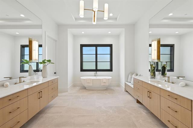 Unbelievable Opportunity to make this Brand New, Calais Custom home your own. Why build when you can buy new!!! Nestled in this quiet, tranquil & prestigious subdivision, enjoy private ponds and peaceful walking paths. This Modern design Masterpiece offers an unparalleled living experience, an Exceptional Floor Plan, gorgeous Natural Light & highest end Designer finishes. The HUGE BACKYARD is Private and is just waiting for you to create your backyard dream oasis in time for Summer!!! (Pool rendering suggests what you could create). Enter this amazing home through a steel & glass pivot front door to a 21 foot soaring ceiling, walls of windows bringing the outside in, open plan living & stunning wood floors throughout. Blending luxurious finishes with modern design, this custom home is complete with Wolf & Subzero appliances, stone countertops, and designer hardware & plumbing fixtures. The open-concept offers a large Family-Breakfast-Chef's Kitchen with huge island and quartzite counters for family and friends to enjoy. The Downstairs Game Room features a Wet Bar and offer access from sliding doors to the oversized backyard and covered patio to enjoy serene views. The dream Primary Retreat boasts a lovely backyard view, a lavish over-sized Spa Bath and HUGE Master Closet. 2nd Primary suite is also downstairs and is a perfect Mother-In-Law suite. Upstairs you find 3 large Bedrooms with modern en-suite baths & spacious walk-in closets, plus a Exercise Room, Loft + Bonus space + storage closet. Add in a private Executive Study w pocket doors, Prep Kitchen + large Walk-In Pantry, spacious Laundry, tons of Storage + spacious 4 car garage provides everything you could need. The East Facing Backyard is PRIVATE & has a large covered veranda complete with fireplace for cozy nights and built in Grill, all surrounded by beautiful topography, Mature Trees + tons of space for all to enjoy. This extraordinary find is a rare combination of privacy, elegance, and functionality!