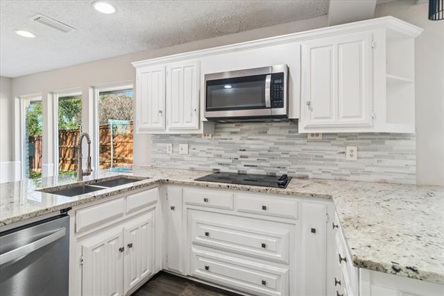 Beautifully remodeled, corner lot, single story 4-bedroom home located in the coveted community of the award winning Brentfield elementary and RISD. House is fully upgraded. Kitchen upgrades include granite countertops, stainless steel appliances, patio sliding doors and floor to ceiling windows to look out to the private backyard with covered patio. You will love the open and bright space throughout the home. This home is great for entertaining with wet bar and spacious living room with fireplace. No carpet ! All hard surface throughout the home. Additionally, all bathrooms have been remodeled. Circular driveway in the front and very large oversized garage in the back accessible from the alley. New roof (2023) as well as new water heater (2024). On the side of the home you will find a very large workshop, storage building. Great open floor plan. A must see !
