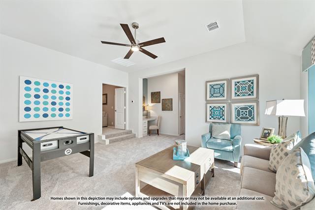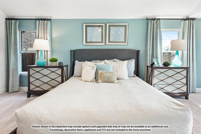NEW! NEVER LIVED IN. Estimated completion April 2026. Bloomfield Homes presents the Carolina IV, a two-story plan with 4 bedrooms and 3 baths and an open, yet traditional layout. The deluxe kitchen sits at the center of the main level with quartz countertops, a large island featuring pot and pan drawers, gas cooking on built-in stainless steel appliances, and under-cabinet lighting. There are two dining spaces - a formal room and a casual breakfast nook off the kitchen. A ledgestone-to-ceiling fireplace, wood-look tile flooring, and a wide span of windows bringing in natural light make the family room a warm and welcoming space to gather. White shaker cabinets and quartz countertops throughout! The primary suite is on the main level and includes an enlarged shower, a generously sized bedroom, and plenty of storage at the walk-in closet. A study with glass doors sits near the front of the home, or flex as a fifth bedroom! 2 more bedrooms split a hall bath downstairs, while the fourth (and largest) secondary bedroom is alone privately upstairs. A media room, game room with a deck built-in, and full bathroom can also be found upstairs - this is a great home to entertain in! And don't forget about the extra space outside the home, from the 3-car garage to the extended covered patio in the backyard! Located across the street from a green space, pond, and trails. So much more to love about this new construction from Bloomfield AND the amenity-packed Devonshire community - stop by any day of the week to learn more at our model home!