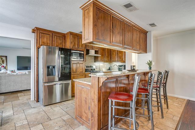 Set along one of Ridgmar’s picturesque, tree-lined streets, this thoughtfully designed home offers a rare blend of space, comfort, and flexibility on over one-third of an acre! Perfectly suited for a wide range of lifestyles, this home delivers generous living spaces and an inviting layout that works for families, downsizers, or anyone looking for room to spread out. Inside, two distinct living areas create natural separation and flow, allowing for both lively gatherings and quiet moments. A timeless brick fireplace anchors the main living space, providing warmth and character for cozy evenings or entertaining guests. The second living area features a dry bar and a large window overlooking your private outdoor oasis, making it ideal for game nights, casual entertaining, or simply relaxing with a book. The kitchen is both beautiful and functional, with granite countertops, stainless steel appliances, and abundant storage. Its open connection to the main living spaces makes cooking, hosting, and day-to-day routines effortless. Each bedroom is generously sized, offering privacy and versatility. The primary suite is a true retreat, with an en-suite bath featuring a large walk-in shower and a spacious walk-in closet. Additionally, a secondary primary bedroom with its own en-suite offers the perfect private space for guests, extended family, or older children. Step outside to a backyard designed for both fun and relaxation. A sparkling pool and spa provide a private retreat for warm Texas days and peaceful evenings, while the covered patio is ideal for BBQs and outdoor gatherings with friends and family. For those who love projects, hobbies, or extra storage, the property also includes a fully gated workshop with heat, air, and electricity. Perfect for work or play. Located in the heart of Ridgmar, this home combines established neighborhood charm with convenient access to shopping, dining, and entertainment. Only minutes from Lockheed, JRB, Downtown and Shady Oaks CC.