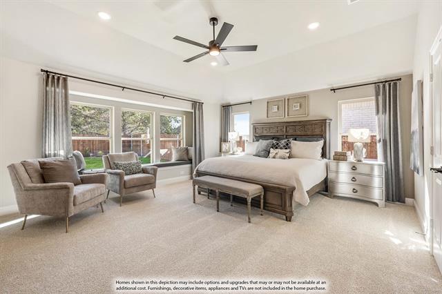 NEW! NEVER LIVED IN. Coming Soon February 2026. Welcome to Sonoma Verde and one of Bloomfield Homes’ most popular single-story designs. This Caraway floor plan has 4 bedrooms, 3 baths, and an open layout, all set on a homesite that backs to peaceful green space. From the start, an 8-foot front door and classic brick exterior create a welcoming entry, complemented by full rain gutters and beautifully designed landscaping with stone edging. Durable wood-like flooring runs through the main living areas. The family room is bright and inviting, filled with natural light from large windows and centered around a cozy direct-vent fireplace. The Deluxe Kitchen truly shines with cabinets extended to the ceiling, glass upper doors with interior lighting, a pull-out trash can, and granite countertops. The layout connects seamlessly to the living and dining areas, making it easy to gather, host, or move through daily routines. The primary suite offers a comfortable retreat with separate vanities, each with its own sink, a linen closet, a relaxing garden tub, and a separate shower. 3 secondary bedrooms provide flexibility for guests, work, or hobbies, including one with its own ensuite bath. Out back, a covered patio with a gas stub makes for a great spot to grill or unwind. Additional features include 2-inch faux wood blinds throughout, a tankless water heater, and a 2-car garage with a cedar door. Located in Sonoma Verde, residents enjoy an exceptional lineup of community amenities, including a pool, clubhouse and pavilion, trails, parks, playgrounds, and a lake for fishing. Sports enthusiasts will appreciate the tennis courts, basketball court, sand volleyball court, soccer field, and baseball field. Visit the Bloomfield Homes model today!