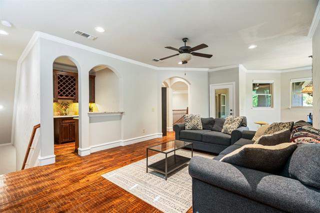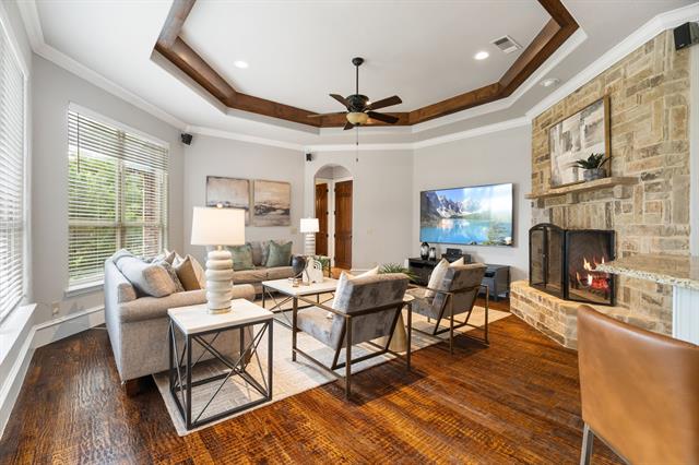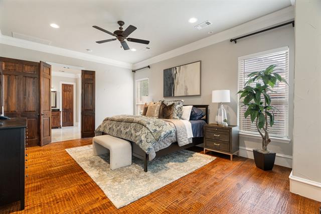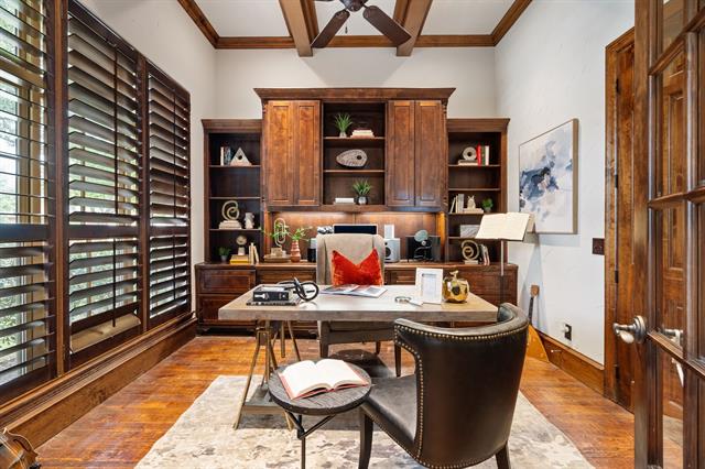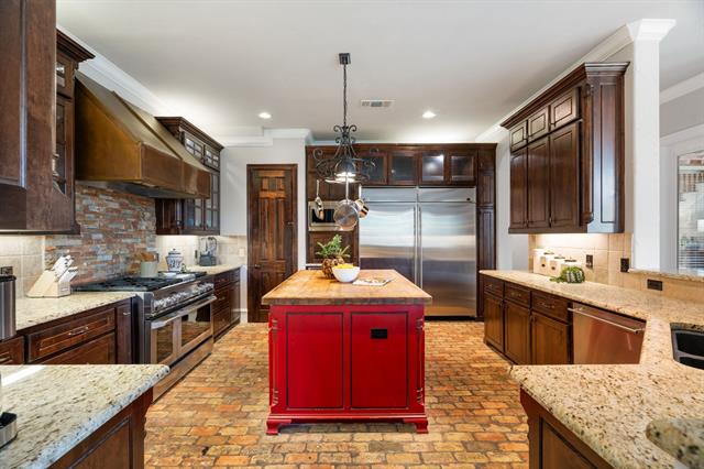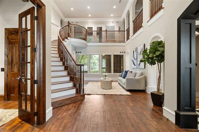 CUSTOM-BUILT LUXURY in the Bluffs of Winding Creek! Staged to perfection, this 5 bed, 7 bath (5 full 2 half) 4,638 SF home is loaded with upgrades. Gorgeous hand-scraped hardwood floors flow throughout both levels. The kitchen is a chef’s dream with GE Monogram commercial appliances, including a built-in double commercial fridge, a huge 6 burner gas range with custom copper hood, brick flooring, center island with butcher block top, tons of cabinetry and a large pantry. Primary suite down features Carrera marble, soaking tub, split vanities, and dual closets. A guest suite with a full bath and walk-in closet is also downstairs. The laundry room is large with ample storage. Upstairs boasts 3 bedrooms, game room and living area with wet bar, dedicated study area, and media room (currently used as the 5th bedroom with ensuite bath and walk-in closet). Three covered patios—fireplace, porch swing & outdoor kitchen included—overlook a landscaped backyard. This home was thoughtfully designed with dual staircases, surround sound wiring, custom moldings, and generous storage. 3-car garage. Fresh paint throughout in 2025. Roof, exterior paint, insulation & plantation shutters in 2023! Sought-after McKinney ISD. Minutes from Historic Downtown McKinney, shopping, and dining! You do not want to miss this gorgeous home!